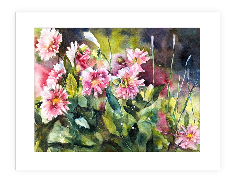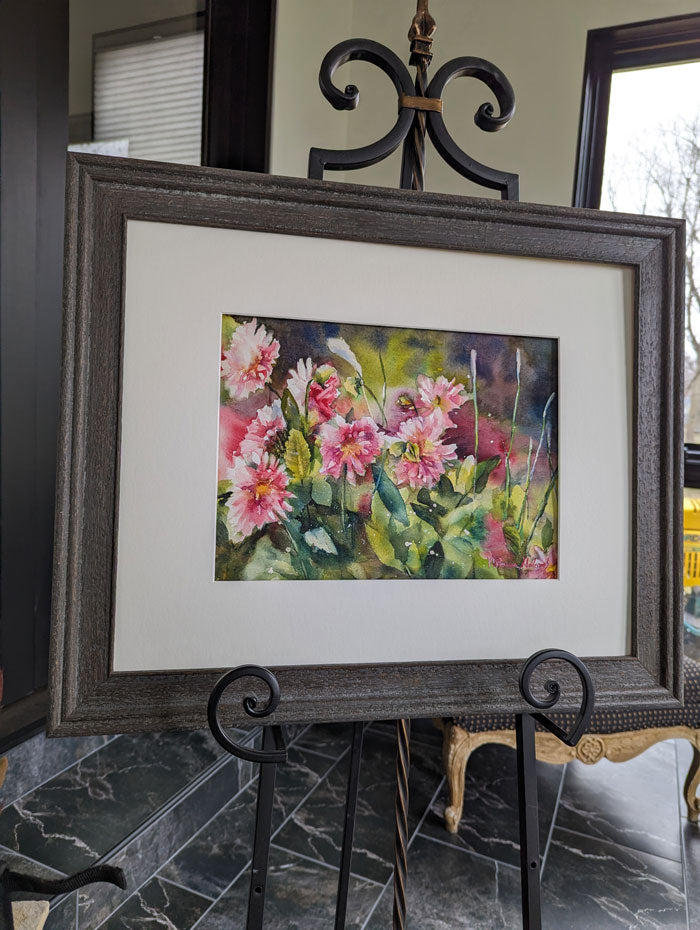 Gorgeous watercolor flowers in gardenscape | Original watercolor painting for your home.