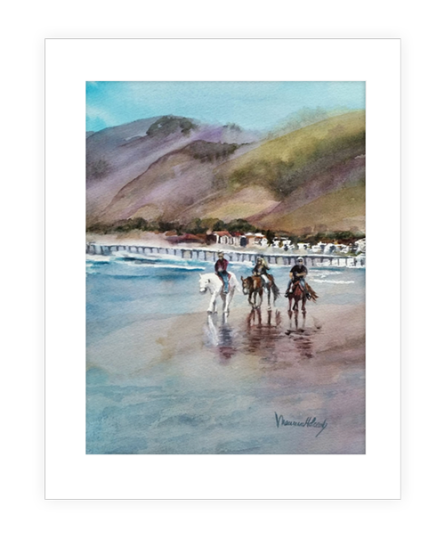 Horses in Pismo Beach, California | Original watercolor painting for your home.
