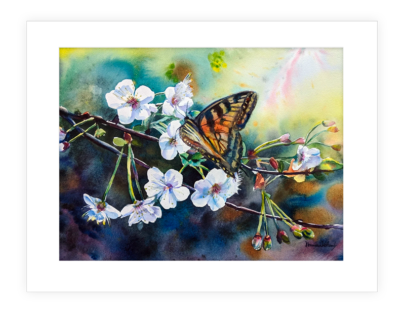 This original hand-painted watercolor will be accompanied by a “Certificate of Authenticity” by Maureen Holcomb. Artwork is done with fine-quality paints and 300lb watercolor paper.